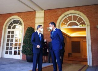 西班牙首相桑切斯在馬德里會見到訪的中共中央政治局委員、中央外事工作委員會辦公室主任楊潔篪。