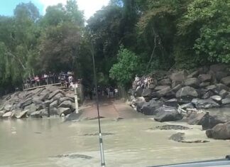 道路淹水,澳洲夫妇开车遇十几条鳄鱼挡路丨趣观世界