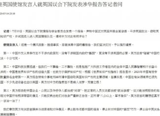 中國駐英使館敦促英方政客停止造謠惑眾 停止破壞中英關係