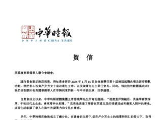 英國廣東華僑華人聯合會總會: 欣聞貴會將於1月1...