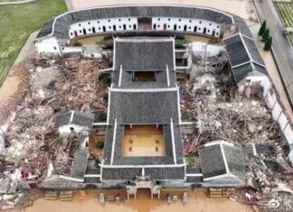 上杭縣官田客家李氏大宗祠受到特大暴雨襲擊坍塌