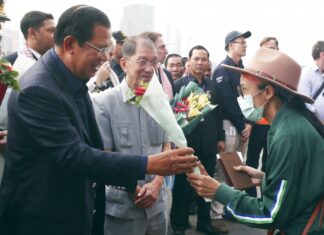 早前被多国拒绝靠岸的「威士特丹号」邮轮,船上所有乘客通过检测后,陆续登上柬埔寨的口岸,总理洪森到场迎接。