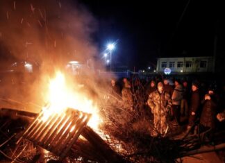 (中华时报讯)周四,乌克兰中部一个城镇的居民与警察发生冲突,他们点燃轮胎,并向一辆载有从中国湖北省撤离人员的巴士车队投掷石块。 警民发生冲突是因为乌克兰中部新桑扎里(Novi...