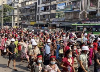 周六缅甸仰光等地爆发迄今最大规模反政变示威