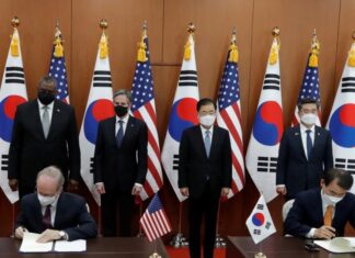 在结束日本行程后,美国国务卿布林肯和国防部...