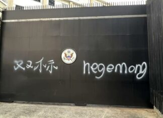 美駐香港領事館遭噴, 港警逮一名持往來港澳通行證中國男子...