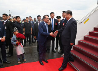 習近平抵金邊機場 柬埔寨國王西哈莫尼熱情迎接