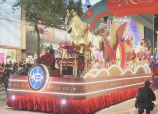 「新春花車巡遊匯演」晚上在尖沙咀舉行。在花車途經的...