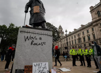丘吉尔雕像遭反种族主义者损毁,约翰逊谴责破坏者背叛示威人...