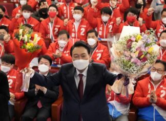 韓國最大在野黨國民力量候選人尹錫悅在總統選...